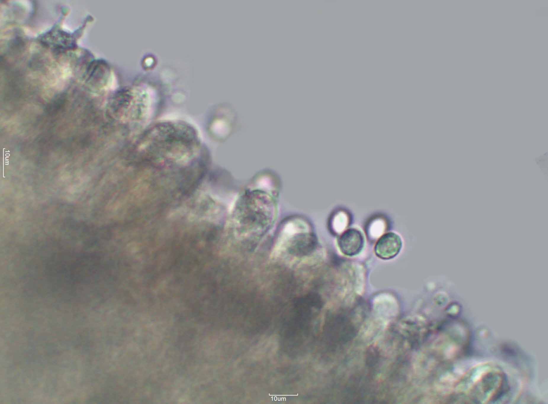 Basidios y basidiolos granulados en agua 1000x