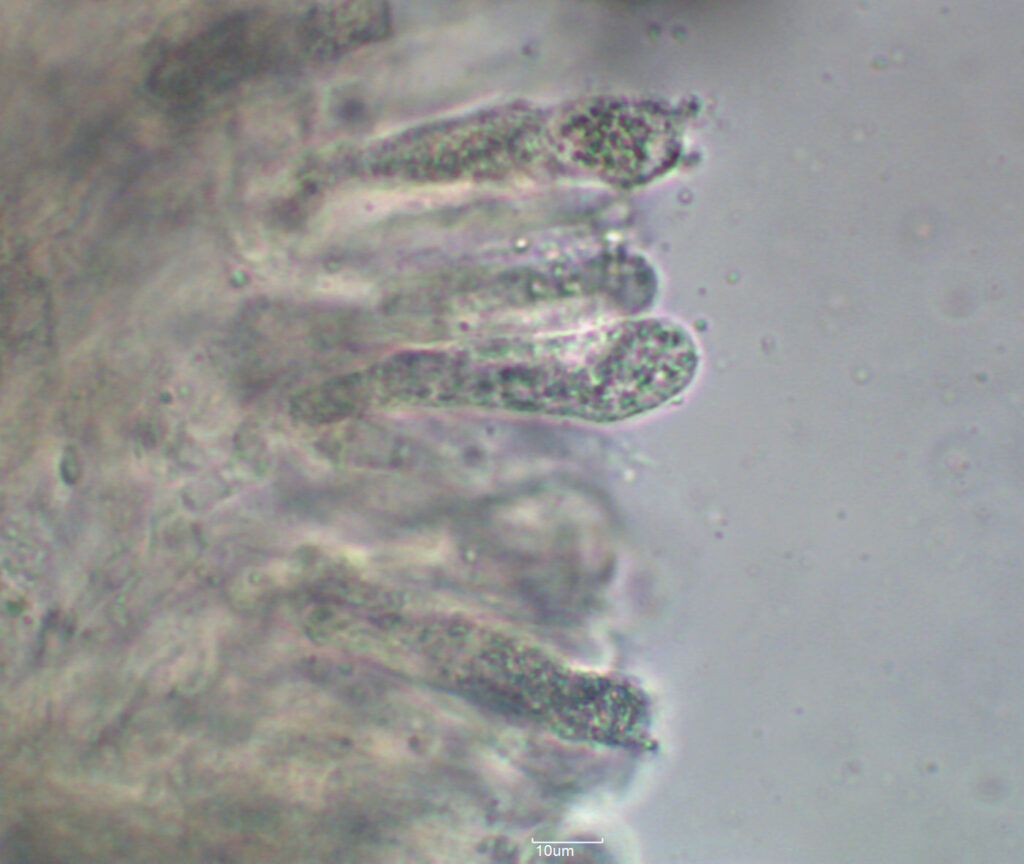 Arista laminar fértil (sin cistidios)1000x. Basidios tetraspóricos.