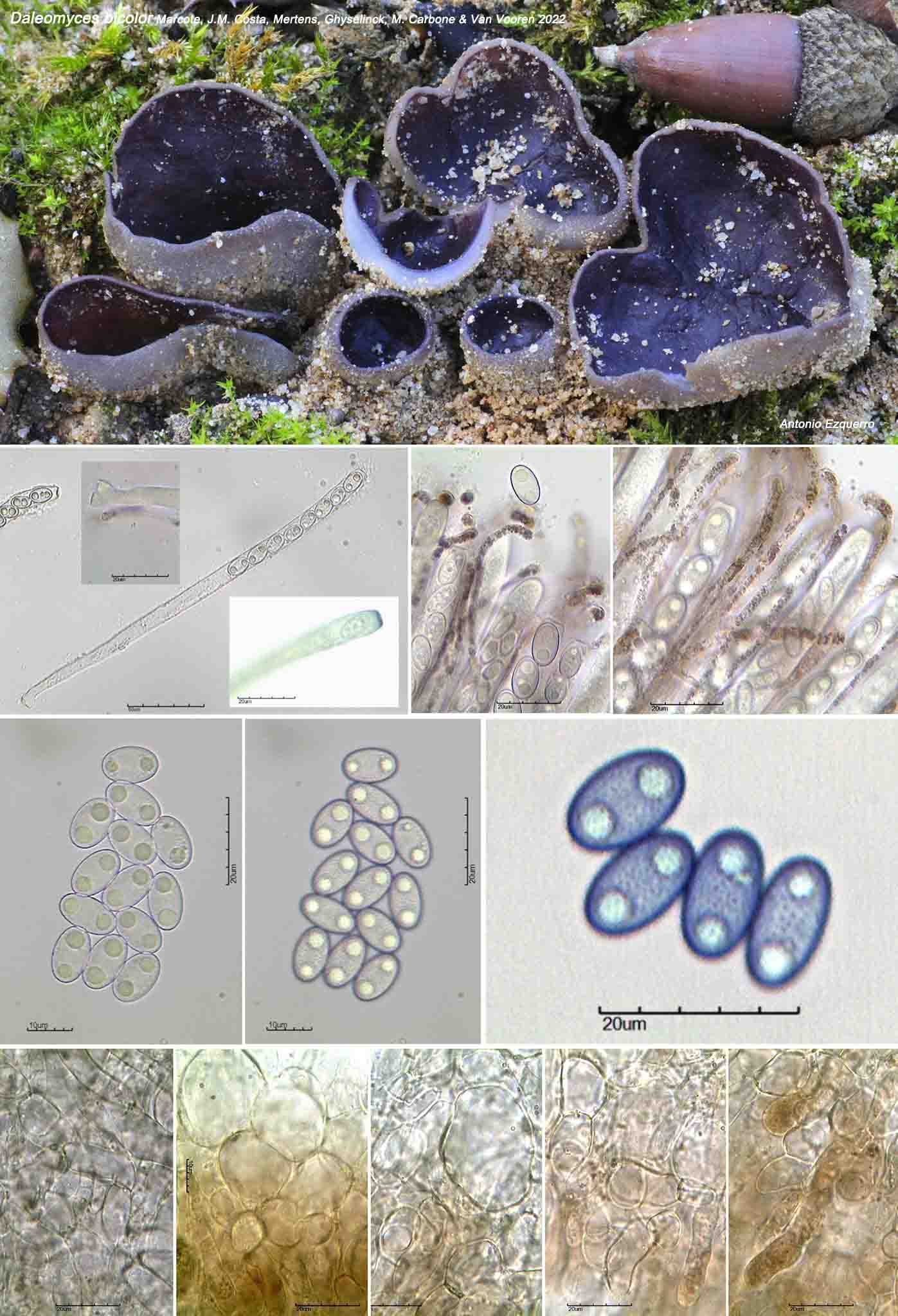 – VAN VOOREN N., R. DOUGOUD, G. MOYNE, M. VEGA, M. CARBONE & B. PERIĆ (2022). Tour d’horizon des pézizes violettes (Pezizaceae) présentes en Europe. 5e partie: le genre Daleomyces. Ascomycete.org 14(4-5): 139-164.