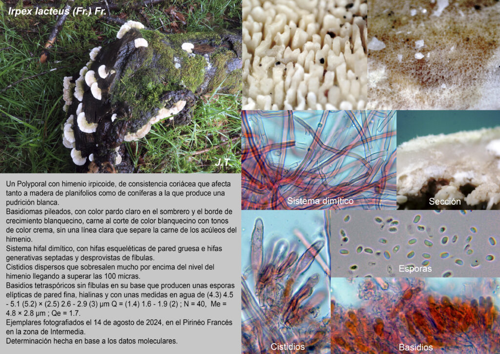 Josep Torres nos trae una poliporácea con el himenio poroide-hidnoide y que evoluciona de resupinado a efuso reflejo (parcialmente sobresaliente) y a pileado..