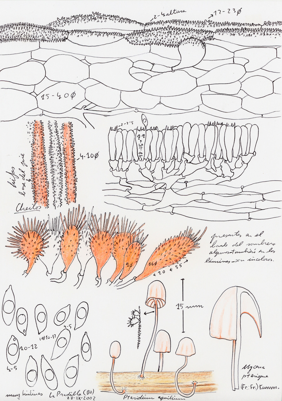 Fichas micológicas, Fichas micológicas de C.E.Hermosilla LOS DIBUJOS DE CARLOS (I) 13 abril, 2025 tmlosa Deja un comentario Empezamos esta nueva singladura ilustrativa con nuestro maestro y referente micológico D. Carlos E. Hermosilla acercándonos a una seta curiosa , de pequeño tamaño y específica de helechos. Mycena pterigena